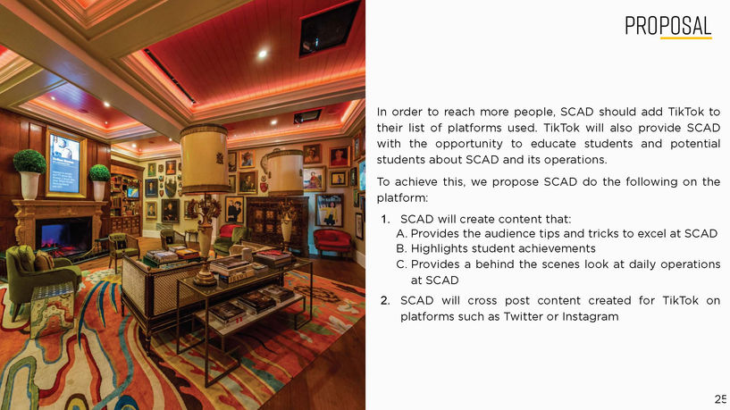 This pitch was created for the Savannah College of Art & Design over the course of 5 weeks. We researched other colleges on Tik Tok and put together a proposal spanning 6 months and focusing on three content pillars. This is just a sample of the full document. To see the full, in-depth document and Tik Toks, click here.